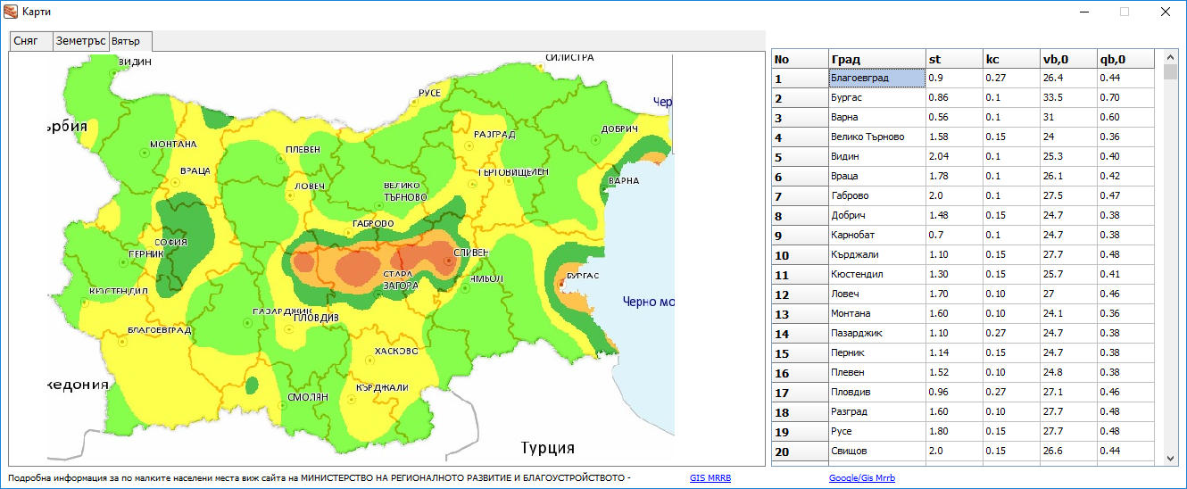 Добавена карта за натоварване сняг/вятър/земетръс
