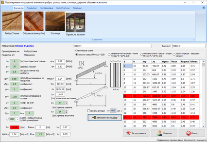 Wood Expert - Оразмеряване на дървени ребра,солици и колони - v5.2Орамеряване на дървени ребра и столица.Оразмеряване на натиск.Допустими сили на натиск с оглед на изкълчването за греди с [] сечениес дължина 3-6м за иглолистен и дъбов материал.Допустими сили на натиск с оглед на изкълчването за греди с О сечениеНс дължина 3-6м за иглолистен и дъбов материал.Възможност за запис на данните в JPG файл за последващо разпечатване към записка.Готови таблици за улами,маии,ребра и столици,тавански гредоред.Площ и съпротивителен момент на различни видове сечения.Зависимост h->L/200Добавена възможност за избиране на граничното провисване (200,250,400)Добавена възможност за въвеждане на корегиращ коефициент kw, kj за корекция на съпротивителяни иинерционния момент за съставни греди.Добавено изчисление на напрежение.Добавяне на визуализация на коефициент на използване.Добавяне на възможност за запис на параметрите със файл.Автоматичен подбор на сечение - оразмеряване на цяла номенклатура със зададените показатели и показване на коеф. на използване за напрежения и деформации.